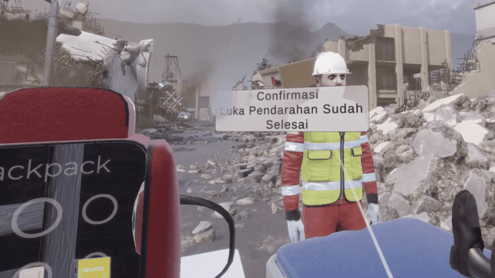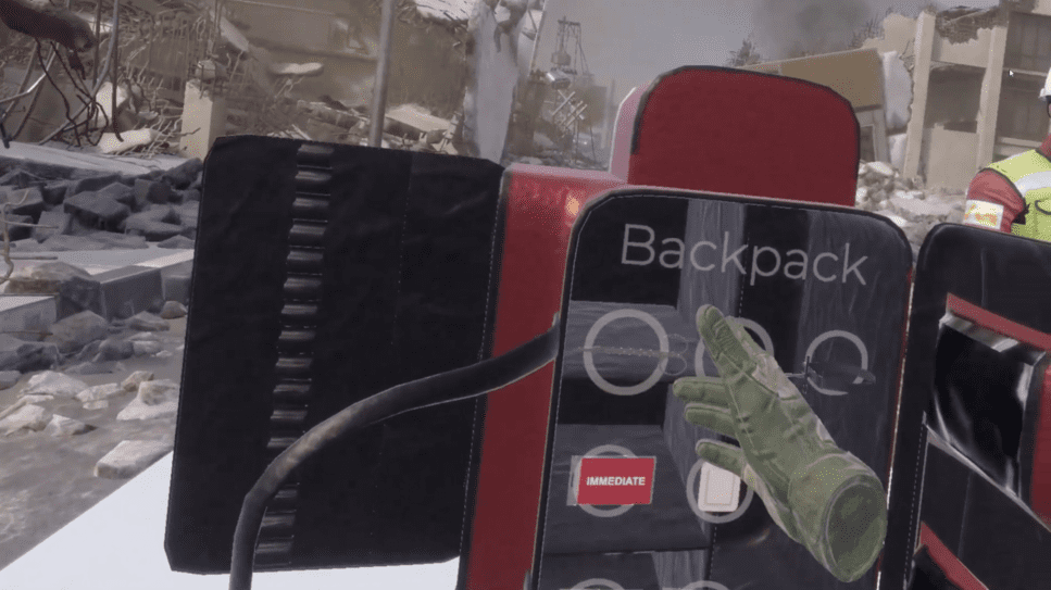 2. Navigating the Medical Kit In a panic, finding the right tool is surprisingly difficult. The VGLANT simulation addresses this by equipping trainees with a fully interactive medical backpack. Using VR hand controllers, users must unzip the bag, search through compartments, and select the exact items needed under extreme time pressure—such as gauze rolls, medical scissors, and specific triage tags (Immediate, Minor, Delayed, Deceased). This builds vital hand-eye coordination.